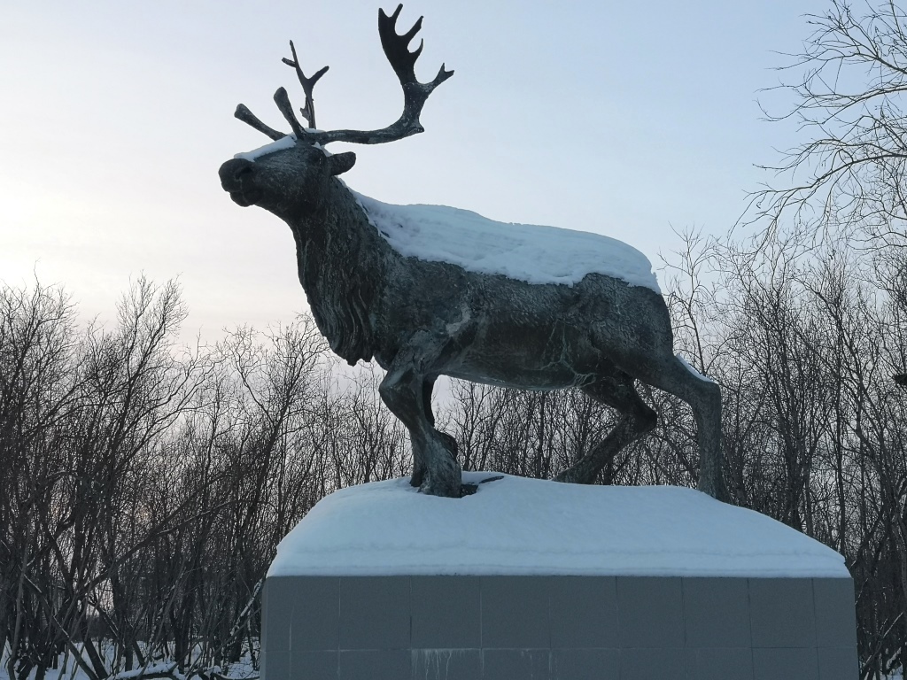 Воркута. Скульптура оленя в парке. Ноябрь 2023 года. Фото Елены Выборовой