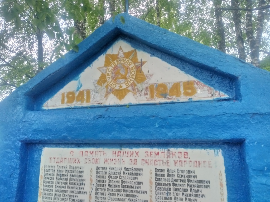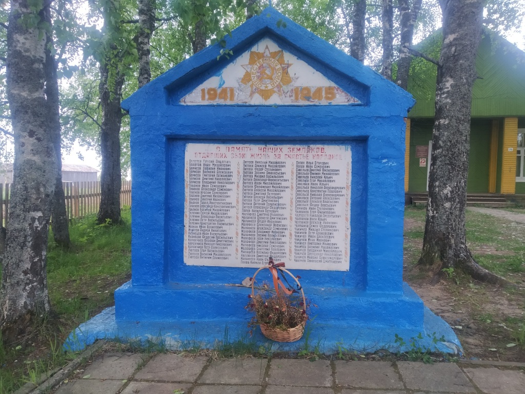 Текст на памятнике: "1941-1945. В память наших земляков, отдавших свою жизнь за счастье народное". На обелиске 88 фамилий жителей д. Вездино, погибших на войне и ветеранов, вернувшихся с войны домой.