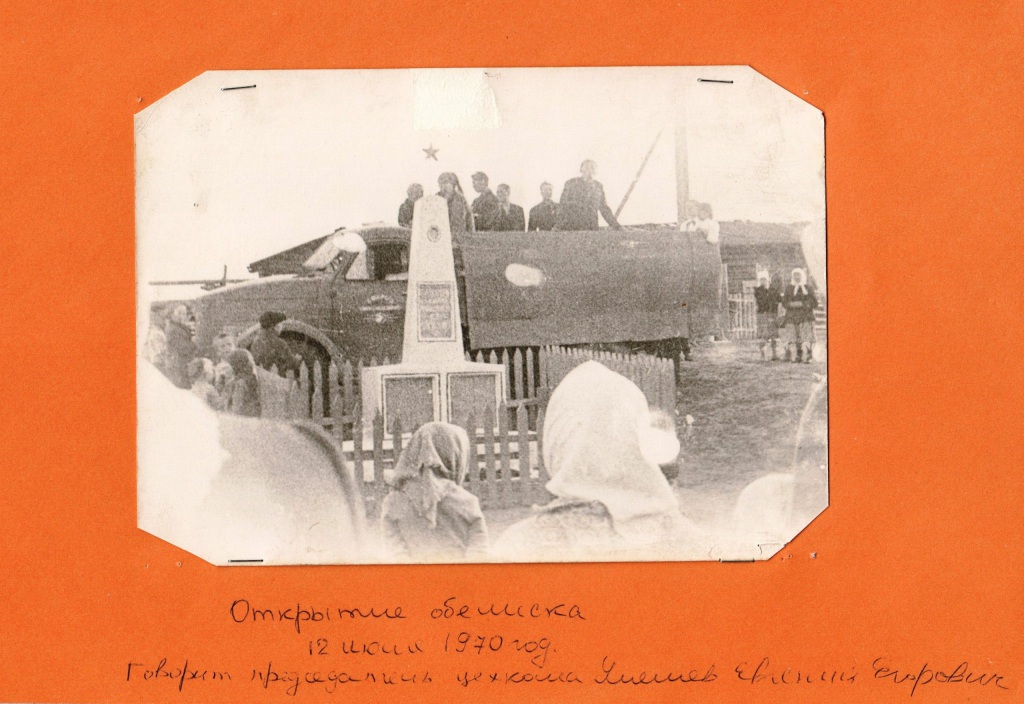 Обелиск был открыт 12 июля 1969 года по инициативе Уляшева Евгения Егоровича (1928-2006), писателя, участника войны, и стараниями односельчан.